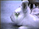 who later rescued her, had her eyes sewn shut at birth so scientists could